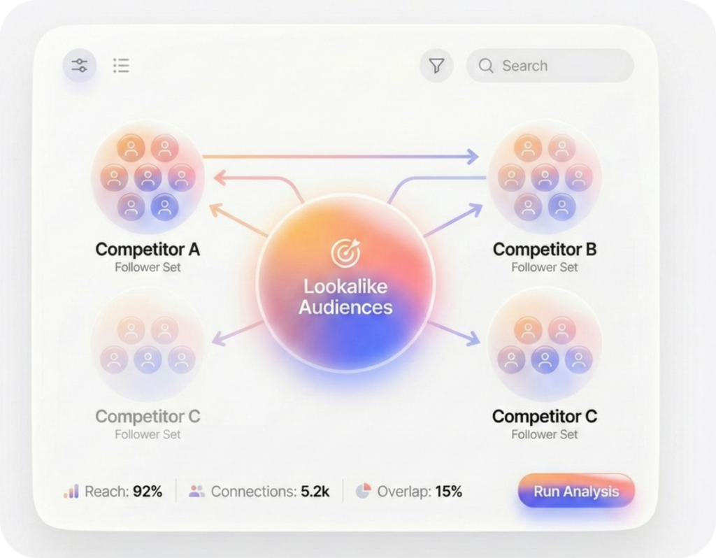 Identify and target lookalike audiences and competitor-adjacent follower sets.